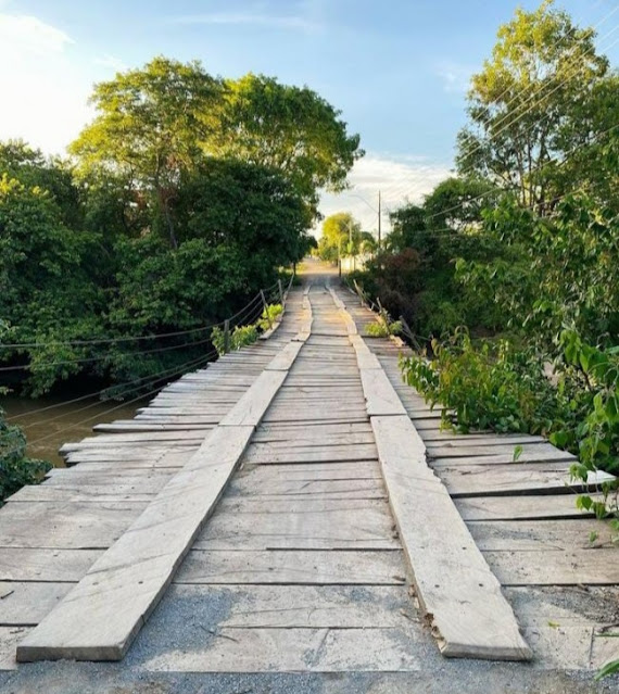 A ponte que conecta os povoados Água Quente e Santo Antônio está impossibilitada de ser utilizada devido a condições precárias que comprometem a segurança dos usuários.