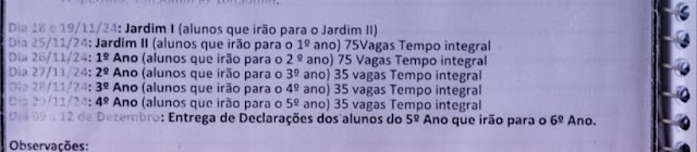 A gestão municipal reforça a importância de cumprir as datas e apresentar toda a documentação para garantir a vaga dos estudantes.