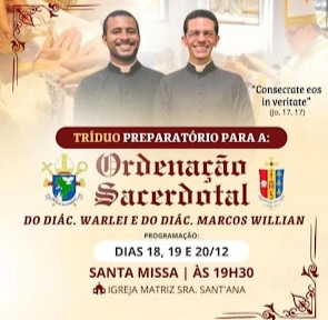 Acontecerá nos dias 18, 19 e 20 de dezembro, a partir das 19h30, na Igreja Matriz Senhora Sant’Ana, em preparação para a ordenação sacerdotal dos diáconos Warlei e Marcos Willian.
