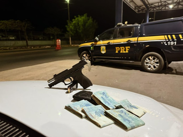 Na última sexta-feira (4), a Polícia Rodoviária Federal (PRF) apreendeu uma arma de fogo e mais de R$ 4 mil em espécie durante uma fiscalização de rotina na BR-242, em Barreiras, Bahia. A abordagem ocorreu por volta das 18h30, quando os policiais pararam um veículo Fiat/Strada que apresentava problemas no farol.