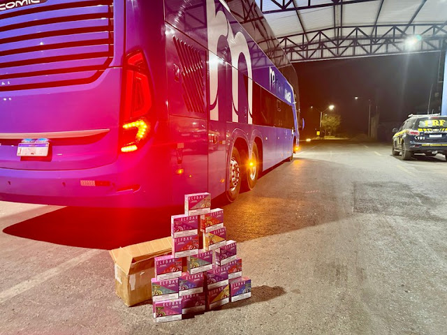 PRF apreende grande quantidade de cigarros eletrônicos em ônibus na BR-242
