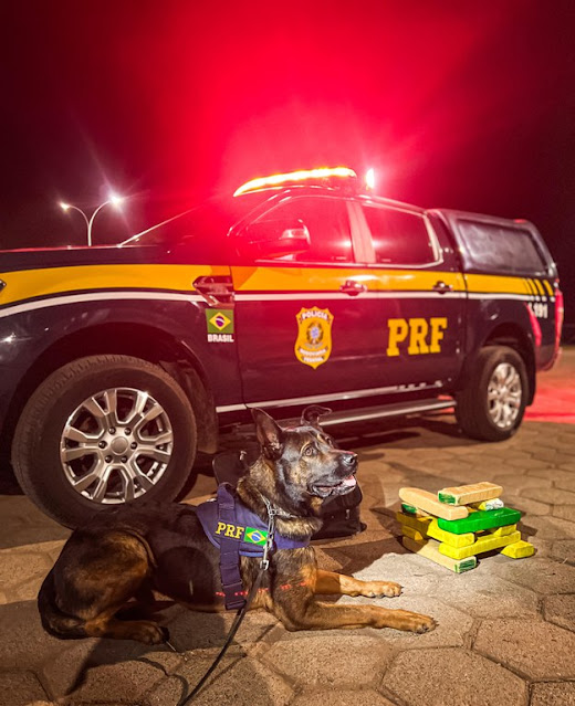 No decorrer da verificação do compartimento de carga do veículo, os policiais contaram com a ajuda do cão farejador Rocky, com quatro anos de experiência na detecção de entorpecentes. O animal indicou positivamente para a presença de substâncias ilícitas em uma mala preta, identificada com a etiqueta de bagagem de um dos passageiros.