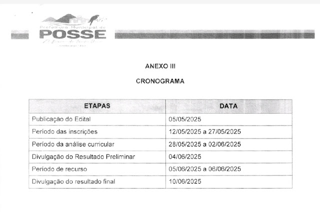 O processo seletivo é por análise curricular, e o resultado preliminar estava previsto para ser divulgado nesta terça-feira, 04 de junho, conforme cronograma oficial. No entanto, até o momento da publicação desta matéria, o resultado ainda não havia sido divulgado no site da Prefeitura nem nos murais públicos indicados.