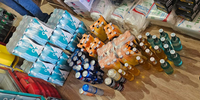 Também foram encontradas 197 latas de cerveja vencidas em agosto de 2024, 6 essências de narguilé sem informações de fabricação em língua portuguesa e vencidas em julho de 2024 e 21 latas de refrigerante vencido em abril de 2025.