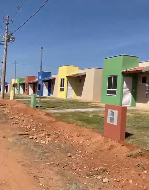 Nas imagens, é possível ver que as moradias estão praticamente concluídas, faltando apenas a pavimentação asfáltica e alguns reparos finais para que sejam entregues às famílias contempladas.