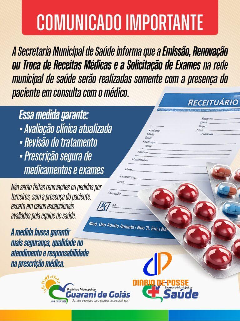 Secretaria de Saúde anuncia novas regras para emissão e renovação de receitas médicas em Guarani de Goiás
