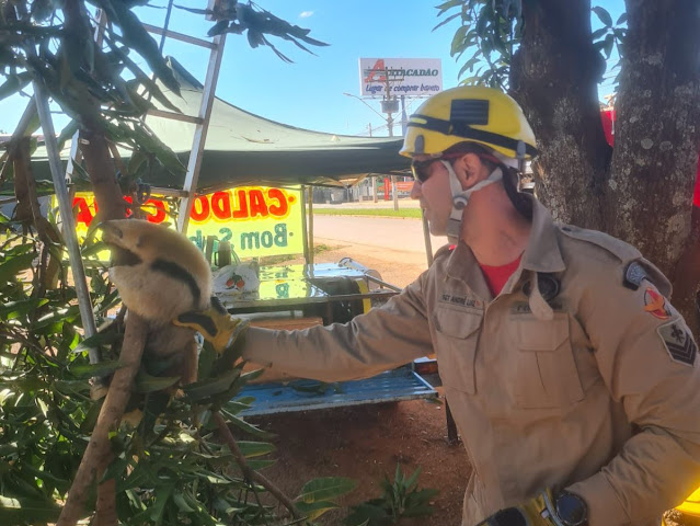 No início da tarde deste domingo (4), uma operação do 19º Batalhão de Bombeiros chamou a atenção de moradores próximos à Avenida Brasília, nas imediações do Parque de Exposições de Formosa (GO). A equipe de salvamento foi acionada para resgatar um tamanduá-bandeira que havia subido em uma mangueira.