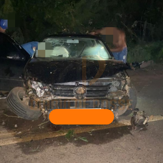 Veículo colide com árvore após cair em buraco em rodovia entre Iaciara e Nova Roma