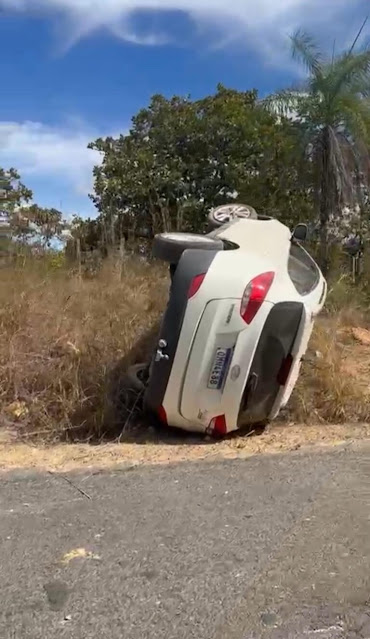 De acordo com informações apuradas no local, o veículo seguia pela via e por motivos ainda desconhecidos, o condutor perdeu o controle e o carro acabou tombando às margens da pista.